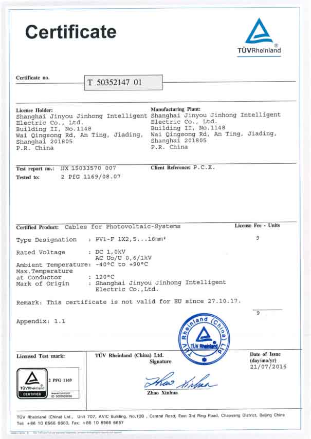 光伏发电系统用电缆,是根据光伏发电设备所处的特殊环境条件设计的,主要适用于直流电压端,发电设备的引岀连接和组件间汇流连接,最高电压 DC1800V (导体,导体,非接地系统,而不是根据负载电路。在单相接地直流系统,该数值应乘以系数0.5)。的光伏发电设备系统。